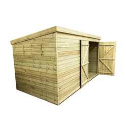 The Pent shed has ledged braced doors. The pent shed comes with double doors; 12mm pressure treated shiplap tongue grove cladding; 28mm x 44mm planed rounded framing. This pent shed comes with Solid OSB Floor and Roof and mineral roofing felt and full fixing kit and instructions.