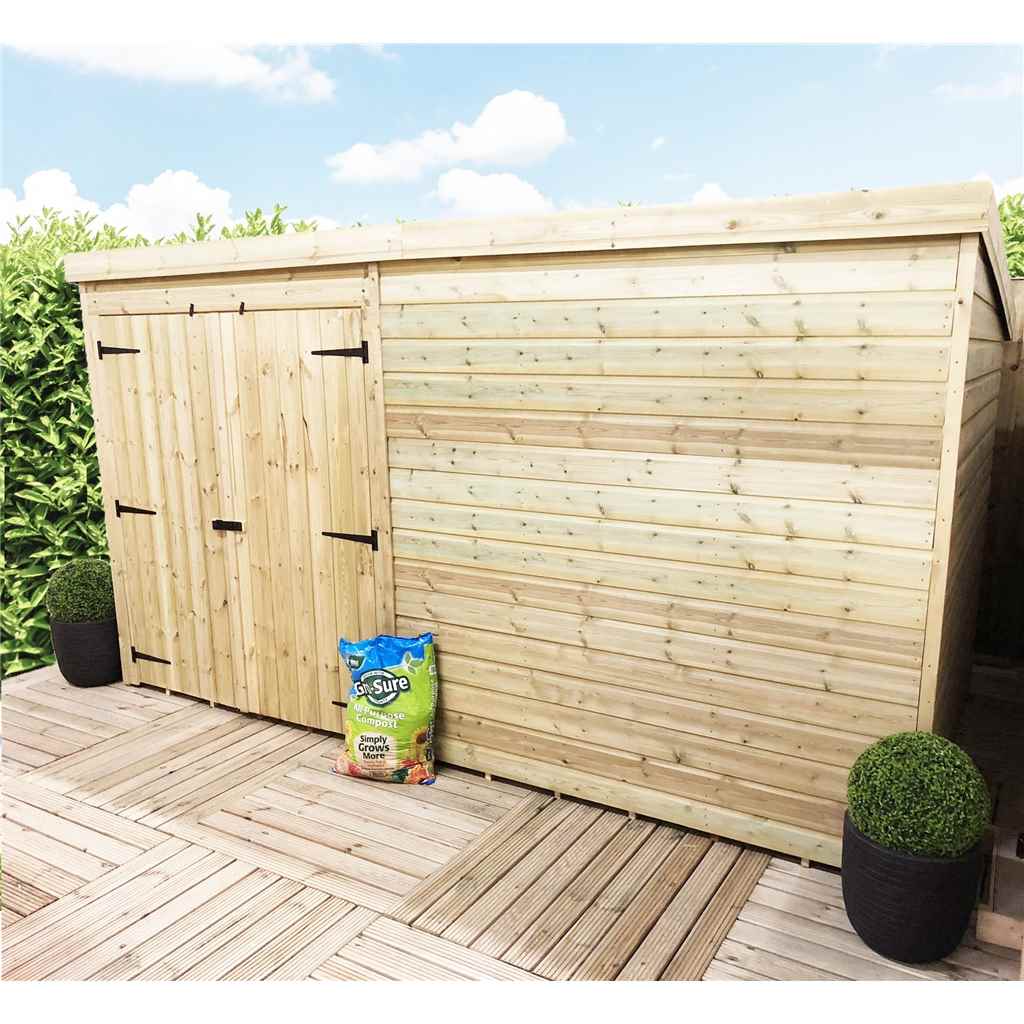 The Pent shed has ledged braced doors. The pent shed comes with double doors; 12mm pressure treated shiplap tongue grove cladding; 28mm x 44mm planed rounded framing. This pent shed comes with Solid OSB Floor and Roof and mineral roofing felt and full fixing kit and instructions.